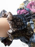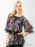 Детали: округлый вырез горловины, укороченные рукава, манжеты рукавов и талия посажены на многорядные резинки