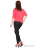 Стильная блузка с округлым вырезом горловины, выполненная в яркой однотонной расцветке. Модель с ассиметричными рукавами, один рукав летучая мышь, другой рукав заужен. Отличный вариант для повседневного использования.