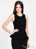 Изящная блуза из плотной, фактурной ткани с жаккардовым узором. Округлый вырез горловины. Застежка на спинке на пуговицу и на молнию в боковом шве. Отрезной низ изделия заложен крупными односторонними складками. Отличный вариант для создания праздничного образа.