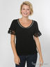 Детали: округлый вырез горловины, короткий рукав украшен кружевной манжетой