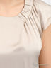 Блузка с короткими рукавами и округлым вырезом горловины. Изделие свободного покроя, который скрывает недостатки фигуры. Внизу изделия присутствует кулиска для более комфортной посадки. Горловины украшена декоративными складками. Отличный вариант на каждый день.