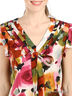 Детали: застежка на молнию на боку, полочка декорирована бантом и многорядной вставкой, короткий рукав дополнен воланом