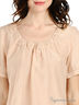 Детали: округлый вырез горловины декорирован аппликацией из графичных цветов, полочка дополнена перфорацией, короткий рукав присборен на манжете