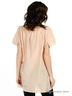 Детали: округлый вырез горловины декорирован аппликацией из графичных цветов, полочка дополнена перфорацией, короткий рукав присборен на манжете