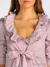 Оригинальная блузка придаст деловому образу озорства и изящности. Горловина украшена рюшами. Рукава 3/4, манжеты застегиваются на пуговицы. Отрезной верх завершается поясом.