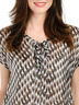 Детали: округлый вырез горловины дополнен шелковистой лентой, по низу изделия выполнена кулиска