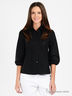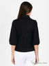 Детали: отложной ворот-стойка, застежка на пуговицы, укороченный рукав, манжета с резинкой, вытачки, сборки