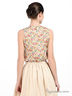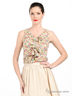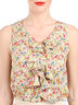Детали: V-образный вырез горловины, застежка на спинке на пуговку, широкие лямки, полочка декорирована воланом, принты