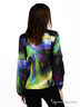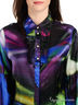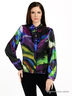Детали: отложной воротник стойка, длинные оригинальные рукава, спереди застегивается на пуговицы, полочка украшена воланами