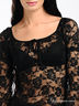 Блузка из тонкого кружева. Широкая круглая горловина и длинные рукава присборены. На горловине изящный бант.