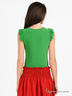 Детали: округлый вырез горловины дополнен трикотажной лентой, короткий рукав с декоративными складками