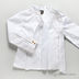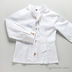 Классическая модель застегивается на пуговицы. Ворот-стойка продолжается лентами, которые завязываются в бант. Фигурные вытачки.