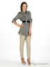 Удлиненная блузка из тонкой нежной ткани. Отложной воротник. Собранные хлястиком рукава. 2 накладных кармана на груди. Застегивается на пуговички до линии талии.