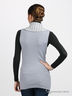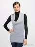 Мягкая трикотажная блузка без рукавов мелкой вязки, прямого кроя. Широкий ворот-хомут выполнен в рубчик с добавлением пушистой нити. Низ изделия дополнен высокой трикотажной резинкой в рубчик.