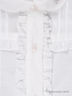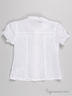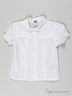 Стильная блузка для девочки выполнена из тонкого хлопка. Изделие с отложным воротником, короткие рукава. Застежка на пуговицы. Полочка декорирована рюшами.