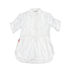 Модель свободного кроя застегивается на пуговицы, расположенные на полочке. На уровне талии ширина изделия регулируется вставленным в изделие шнурком.