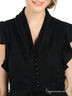 Детали: v-образный вырез с отложным воротом, короткие рукава-воланы, широкий втачной пояс, застегивается на пуговицы, талия со шлевками и на поясе, низ оригинально расклешен