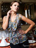 Очаровательная блузка прямого кроя, выполнена из шелковистого материала. Изделие с округлым вырезом горловины и короткими рукавами. Полочка декорирована воланами.