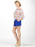 Детали: круглый вырез на кулиске и ленточке, широкие рукава 3/4, низ посажен на резинку, цветочный принт