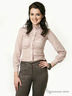 Блуза со сборкой на полочке и воротником-стойкой. Застежка на пуговицы.