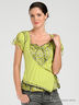 Детали: короткий прямой рукав, шелковистые и сетчатые вставки, полочка с запахом