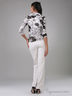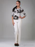 Трикотажная блузка приталенного покроя. Круглая горловина. Воротник хомут. Рукава 3/4.