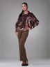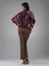 Трикотажная блузка покроя летучая мышь с абстрактным принтом. Круглая горловина с воротником хомут. Сочетание комфорта и качества.