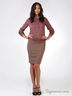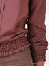 Легкая блуза изысканного бордового цвета из приятного на ощупь материала. Круглая горловина с отложным воротником. Манжеты и низ изделия посажены на многорядную резинку, что придает блузе очаровательную форму. Полочка декорирована складками.