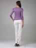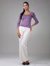 Классическая трикотажная блузка нежного женственного цвета. Широкая круглая горловина. Длинные рукава присборенны на плечах.