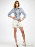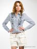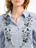 Блузка из хлопка. Отложной воротник-стойка. Застегивается на пуговицы. Длинные рукава с манжетами на пуговицах. Полочка украшена бисером.