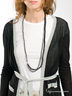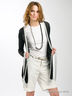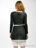 Трикотажный кардиган из полупрозрачного легкого материала. Длинные рукава. Край изделия, манжеты и пояс выполнены из трикотажного материала с люрексом. Спереди имитация карманов.