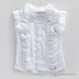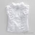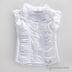 Приталенная модель без рукава застегивается на пуговицы по всей длине изделия. Изделие украшено рюшами, оборками и сборками.