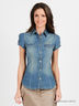 Детали: отложной ворот-стойка, короткий рукав, застежка на кнопки, два нагрудных кармана, эффект потертости