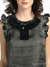 Детали: v-образный вырез с завязкой, без рукавов, декорирована оборками