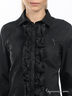 Детали: застежка на пуговицы, полочка декорирована двойной рюшей с атласным кантом, длинный прямой рукав с манжетой на двух пуговицах