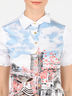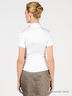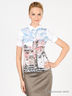 Детали: отложной воротник, застежка на пуговицы, короткий рукав декорирован оборкой и пуговицами, полочка декорирована купонным рисунком и стразами