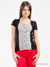 Прекрасная блузка с фигурным вырезом горловины и короткими рукавами. Дизайн изделия подчеркнет Вашу индивидуальность в создании неповторимых образов. Отличный вариант для женского гардероба.