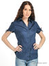 Детали: отложной воротник, застежка на пуговицы, короткий рукав на кулиске с лентой, регулирующей высоту