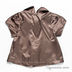 Нарядная блузка из атласной ткани широкого кроя. Застегивается на молнию на спинке. Отложной воротничок. Короткий рукав-фонарик. От верха полочки выполнена встречная складка. Низ изделия декорирован серебристой прострочкой и вышивкой с пайетками.