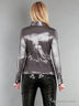 Приталенная блузка из атласного материала. Отложной воротник-стойка, длинные рукава с манжетами на пуговицах, застегивается на пуговицы, полочка украшена присборенной лентой.