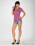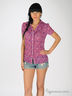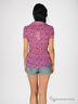 Полупрозрачная блузка из жатой ткани. Кокетка на спинке. Отложной воротник. Планка-застежка с пуговицами по всей длине изделия. Рукав-фонарик, застегивается на пуговичку. Изделие декорировано рюшами.