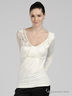Детали: Глубокий V-образный вырез, полочка декорирована вязаным цветком и складками