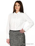 Детали: отложной воротник стойка, застегивается на пуговицы, длинные рукава с манжетами на пуговицах, полочка украшена рюшами