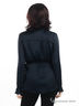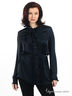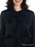 Детали: отложной ворот, переходящий в декоративный шарф; манжеты декорированы рюшами; впереди декоративные пуговицы; декорирован оборками; завязывается на тонкий поясок