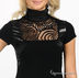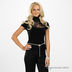 Оригинальная черная блузка с коротким рукавом подчеркнет Ваш индивидуальный стиль и добавит романтичности в образ. Приятная на ощупь ткань. Ворот - стойка из атласной ткани в складку. На полочке вставки из комбинированных тканей. Основание изделия из трикотажной ткани.