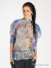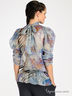 Блуза из тонкой струящейся ткани прямого кроя. Воротник- стоечка завязывается на ленту. Рукава и низ изделия присборены резинкой.