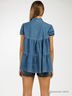 Джинсовая женская блуза расклешенного покроя. Отложной воротник на стойке. Планка-застежка на пуговицах. Короткие рукава фонарики.