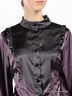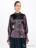 Приталенная блузка из атласной ткани. Воротник-стоечка. На манишке нежная рюша. Рукава- удлиненные фонарики. Декоративная отделка манжет.