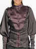 Приталенная блузка из атласной ткани. Воротник-стоечка. На манишке нежная рюша. Рукава- удлиненные фонарики. Декоративная отделка манжет.