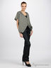 Стильная блузка оригинального дизайнерского кроя из тонкой трикотажной ткани. Застегивается на молнию. Округлый вырез горловины дополнен трикотажной лентой. Широкий короткий рукав. Оригинальный крой низа изделия.